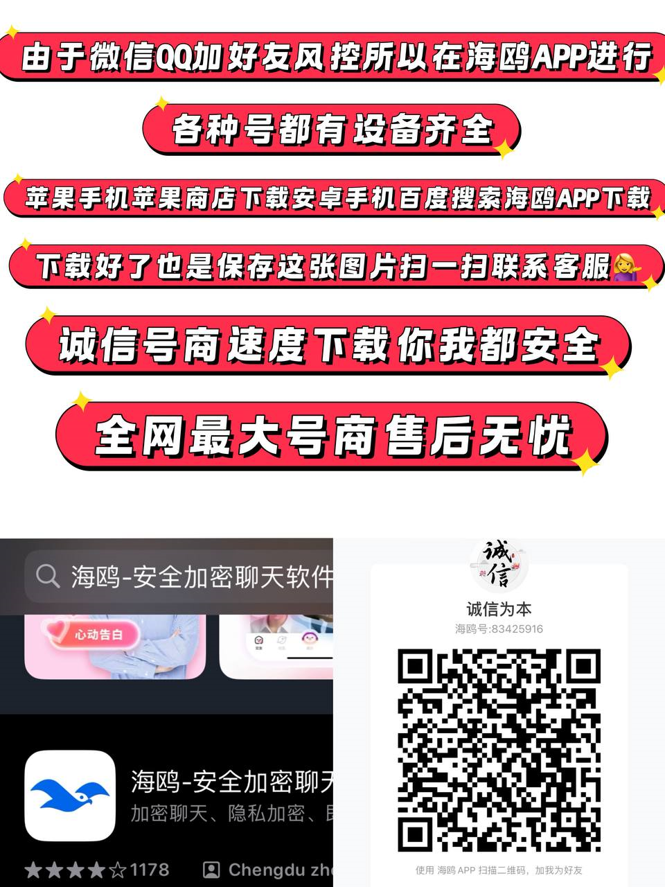 本平台是专业的微信小号交易平台,提供微信老号和微信白号等多种资源。支持微信实名账号交易和微信账号批发购买服务,实现全自动化的微信账号自助交易。严格的账号审核机制保障交易安全。微信实名号 微信小号 微信老号购买请保存下方图片微信扫码下载海鸥APP 咨询客服💁♀️